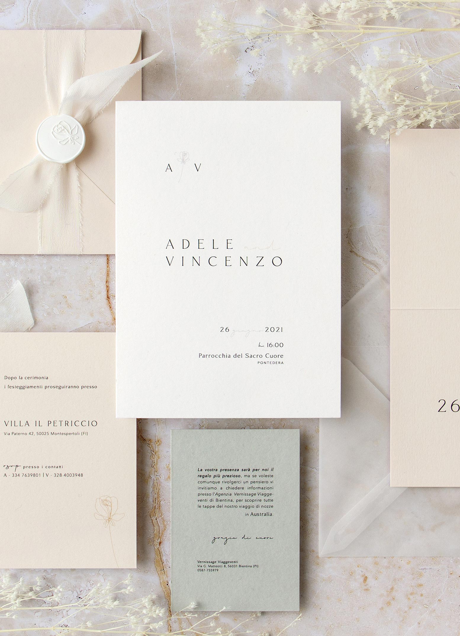 La collezione di wedding stationery stilisticamente predefinite, pronte per essere arricchite e personalizzate dai vostri testi.